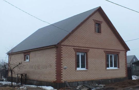Для наружной отделки фасада щитового дома можно использовать любые фасадные материалы: кирпич, сайдинг, блок-хаус, плита ЦСП.
